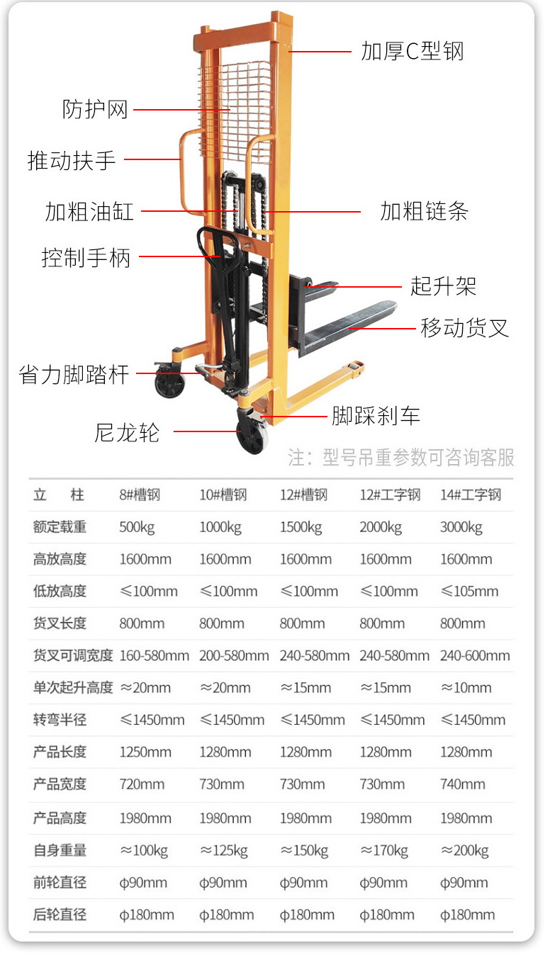 荷重1000kg*1.6M 重量:125KG
