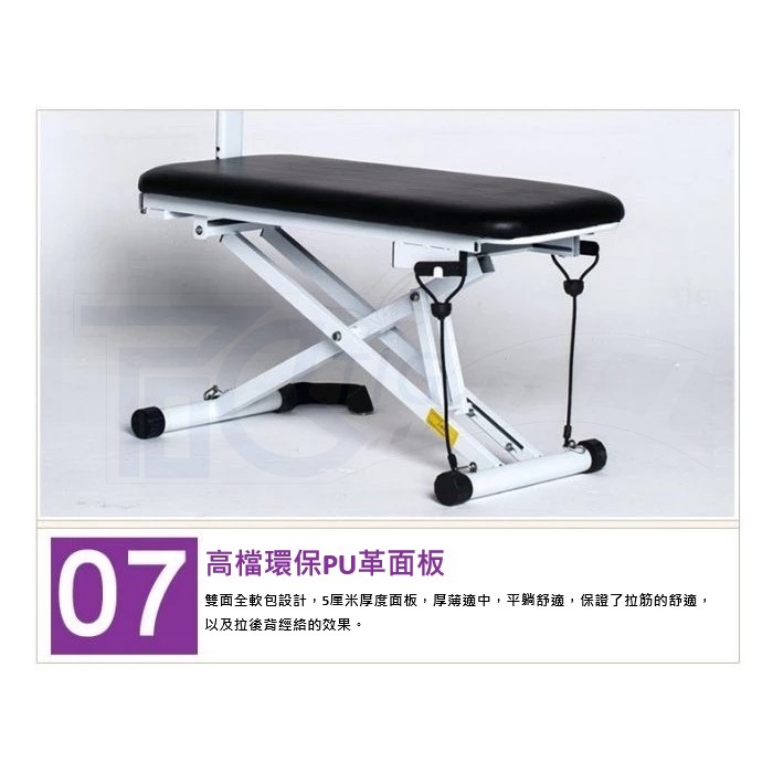 4、多功能拉筋健身器比普通拉筋凳高5cm,達到55cm。同時,拉筋立柱與面板完全不重疊的設計,讓我們在拉筋的過程中,大腿根部不會受到面板的阻擋,大大的增加了大腿向下的空間,拉筋效果自然會更好。