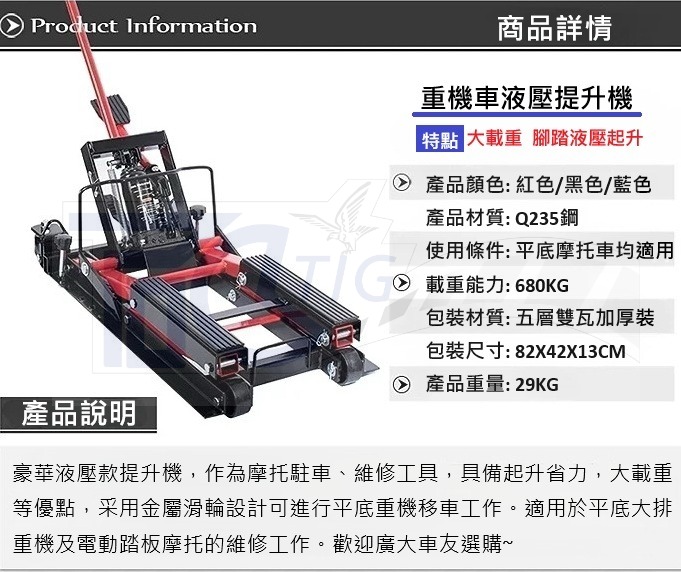 TIG啟思工業 摩托車升降台加寬橡膠款 頂車架