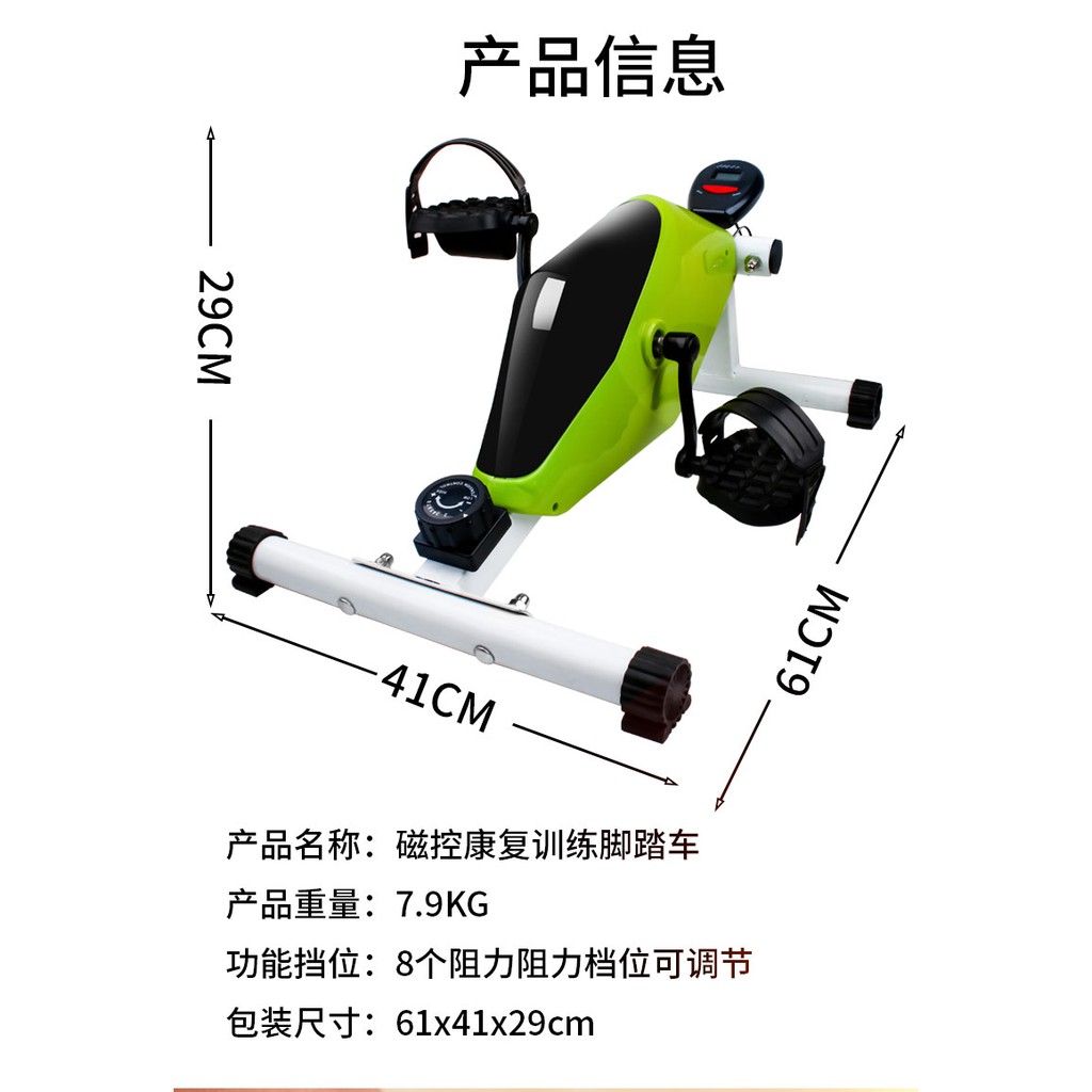 適合全家大小一同使用!運動可改善體質,使您更有自信 • 新型手足訓練健身車適合全身輕量運動,可作為有氧運動或重量訓練的熱身器材,或作為居家經常性的運動器材,主要作用為下半身肌群, 可以用來訓練心肺功能及耐力的, 提高身體的基礎代謝率,使得脂肪的消耗加快,使人更有精神更有活力,使注意力更集中,思緒較敏銳,較有意志力。 商品特色: *對腳(手臂)訓練及復健設計,強化肌肉機能! •增強關節活動及提升運動部位之活動力! •利用本迷你腳踏車,可增強臀部及大腿之結實! •腳踏方向為正轉的單向設定,可防止踏板空轉! •造型亮麗輕巧,不佔空間! 操作姿勢: •上臂運動 •坐著, 腳部踩踏運動 •躺臥床上, 腳部踩踏運動