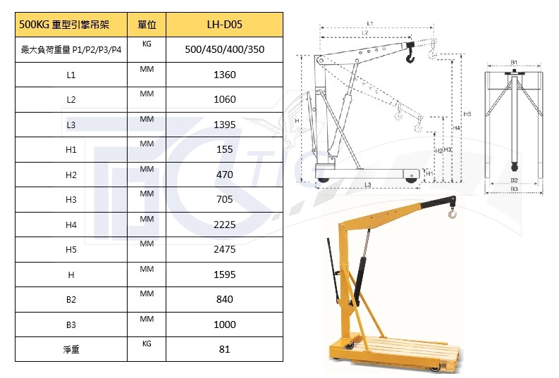 TIG 啟思重系列:歐式重型吊架 500-2000kg 折疊油壓吊架(保固一年.本工廠都有維修)